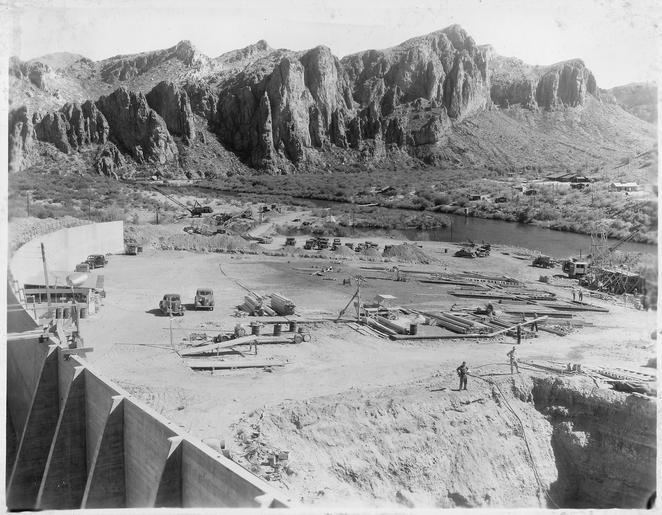 | Keywords: "Stewart Mountain Dam. View looking downstream, new spillway channel. Left counterfort wall in lower left corner." - NARA - 294627.tif Scope and content Photograph from Volume One of a series of photo albums documenting the construction of Roosevelt Dam Stewart Dam and other related work on the Salt River Project in Arizona General notes 294627 Local identifier Department of the Interior Bureau of Reclamation Engineering and Research Center 05/18/1981 - 03/04/1988 NARA's Rocky Mountain Region Denver NRGA Building 48 Denver Federal Center West 6th Avenue and Kipling Street Denver CO 80225-0307 1936 Record group Record Group 115 Records of the Bureau of Reclamation 1889 - 2008 Record group ARC 444 Photograph albums compiled 1903 - 1972 Series ARC 293611 File unit File unit ARC Variant control numbers NAIL Control Number NRG-115-CONSTPHO85006-SALTRIVERS4 yes Other versions <gallery> File Stewart_Mountain_Dam _View_looking_downstream _new_spillway_channel _Left_counterfort_wall_in_lower_left_corner _-_NARA_-_294627 tif tif File Stewart_Mountain_Dam _View_looking_downstream _new_spillway_channel _Left_counterfort_wall_in_lower_left_corner _-_NARA_-_294627 jpg jpg </gallery> NARA-cooperation PD-USGov Construction of the Roosevelt Dam NARA TIF images with categorized JPGs |