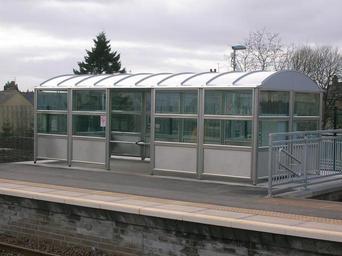 Keywords: Stewarton Station, Platform 2 shelter.JPG en Stewarton railway station Platform 2 shelter Glasgow - Kilmarnock - Dumfries - Carlisle line North Ayrshire Scotland own Rosser1954 Roger Griffith 2010-03-19 Stewarton railway station