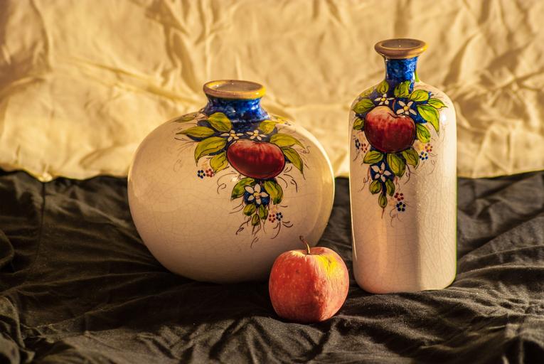 Keywords: still life fruit apple vases color rustic