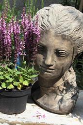 Keywords: still life gartendeko female bust flowerpot flowers plant blumenstock violet planted
