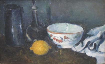 View Original:'Still-life in Blue with Lemon' by Paul Cézanne, Cincinnati Art Museum.JPG (3108x1902)