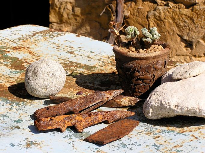 Keywords: still life stainless antique provence weathered iron rusted scrap historically