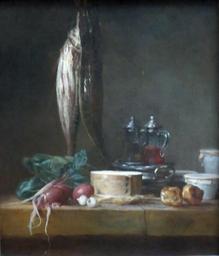 Keywords: Still Life with Fish, Vegetables, Gougères, Pots, and Cruets on a Table by Jean-Baptiste Siméon Chardin.jpg en Still Life with Fish Vegetables Gougères Pots and Cruets on a Table oil on canvas painting by Jean-Baptiste Siméon Chardin 1769 Getty Center own Wmpearl 1769 French still life paintings in the Getty Center Still life paintings by Jean Siméon Chardin Still-life paintings of glassware Chardin Gougère 18th-century still life paintings in the United States 18th-century still life paintings of food 1760s paintings from France 1769 paintings Still life paintings of fish PD-old-100 Cc-zero |