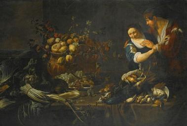 Keywords: Still Life with a Maid and Servant Cavorting by Adriaen van Utrecht.jpg artwork Creator Adriaen van Utrecht and Creator Theodoor Rombouts or A Still Life of Fruit Vegetables and Game on a Table with a Maid and Servant Cavorting 1631 oil on canvas size cm 143 5 213 2 object history http //www sothebys com/content/sothebys/fr/auctions/ecatalogue/2015/old-master-british-paintings-day-sale-l15034/lot 190 html Sold at Sotheby's on 9 July 2015 London PD-old-100 Still life paintings by Adriaen van Utrecht Kitchen scenes by Adriaen van Utrecht 1631 paintings 1630s still life paintings 17th-century oil on canvas paintings |