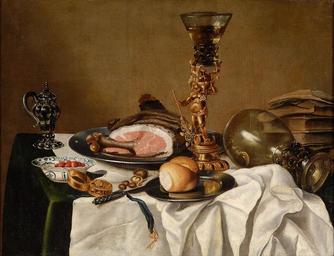 Keywords: Stilleben mit Schinken Büchern und Prunkgefässen.jpg Artwork anonymous Niederländische Schule otherdate century 17 oil canvas cm 75 96 object history credit line accession number http //www duesseldorfer-auktionshaus de/ 2011/1 PD-old-100 17th-century unidentified painters Still life paintings of food Still life paintings of tableware 17th-century still life paintings of food Meats in art Still-life paintings of glassware Berkemeyers in paintings Paintings of silverware Statuettes in art Green textiles in art White textiles in art 17th-century paintings location missing Images from Düsseldorfer Auktionshaus Rummers in paintings ImageNote 1 784 378 412 329 1200 921 2 rummer ImageNoteEnd 1 ImageNote 2 627 18 270 258 1200 921 2 berkemeyer ImageNoteEnd 2 |
