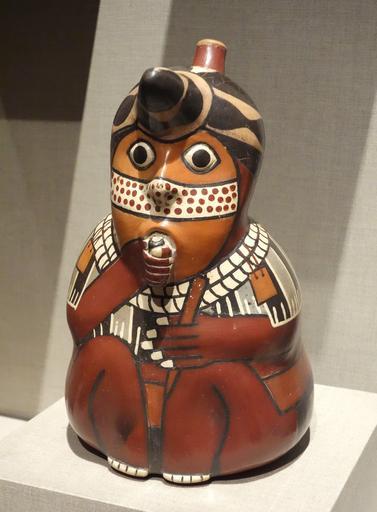 | Keywords: Stirrup-spouted vessel in the form of a ceremonial figure, Peru, South Coast, Nasca, 550-900 AD, earthenware and pigment - De Young Museum - DSC00330.JPG en Exhibit in the De Young Museum San Francisco California USA This artwork is in the public domain because the artist died more than 70 years ago Photography was permitted in the museum without restriction 2013-11-05 14 57 08 own Daderot other versions cc-zero Uploaded with UploadWizard Nazca pottery in the De Young Museum | ||||