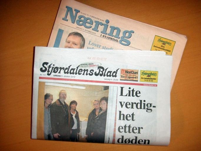 Keywords: Stjørdalens Blad 09.10.10.jpg Dagens utgave av Stjørdalens Blad samt bilaget Næring i Stjørdal lørdag 9 oktober 2010 own 2010-10-09 Erik Fløan Newspapers of Norway