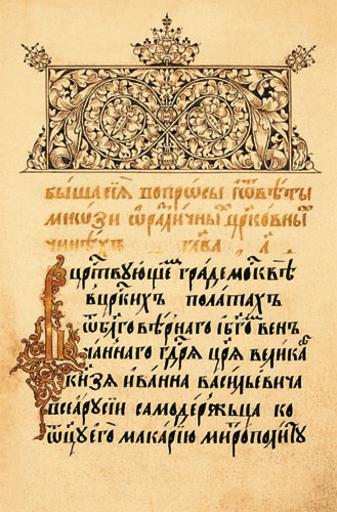 Keywords: Stoglav (title).jpg Стоглав 1551 г Титульный лист http //historydoc edu ru/catalog asp cat_ob_no 12292 ob_no 12730 1551 anonimus PD-old-100 Manuscripts in Russia