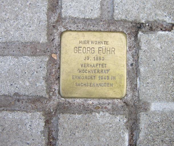 | Keywords: Stolperstein für Georg Führ, Friedrich-Wilhelm-Straße 47.jpg 50 8683579 8 0306470 de Stolperstein für Georg Führ Friedrich-Wilhelm-Straße 47 57074 Siegen Nordrhein-Westfalen Deutschland Content Hier wohnte Georg Führ Jg 1880 verhaftet 'Hochverrat' ermordet 1943 in Sachsenhausen Openstreetmap http //www openstreetmap org/browse/node/1663095775 en A Stolperstein literally stumbling block “ a small cobblestone-sized memorial for a victim of Nazism for Georg Führ at Friedrich-Wilhelm-Straße 47 57074 Siegen Nordrhein-Westfalia Germany Content here lived Georg Führ born 1880 arrested 'high treason' murdered 1943 in Sachsenhausen Openstreetmap http //www openstreetmap org/browse/node/1663095775 2012-03-06 own Goeggimuss cc-zero Stolpersteine in Siegen Stolpersteine for those charged with treason |
