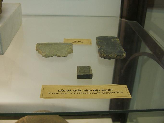 Keywords: Stone axe & stone seal.jpg Rìu đá và con dấu đá<br>Stone axe stone seal Cat Tien sanctuary Lam Dong province Vietnam self-taken at the National Museum of Vietnam History 2007-10-21 Khương Việt Hà viethavvh Cat Tien Stone sculptures in the National Museum of Vietnamese History Pictures by Viethavvh |
