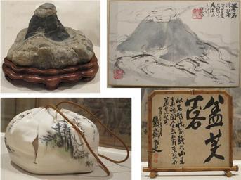 Keywords: Stone, bag, album & screen by Tomioka Tessai, Tanaka Hakuin, Tajika Chikuson & Hashimoto Kansetsu, Honolulu Museum of Art.jpg en Set of stone in shape of Mount Fuji painted storage bag album of three paintings of Mount Fuji and miniature table screen by Tomioka Tessai 1836-1924 Tanaka Hakuin 1865 - 1934 Tajika Chikuson 1864 - 1922 and Hashimoto Kansetsu 1883 - 1945 Japan Meji period 1911 Honolulu Museum of Art accession 12289 1-4 own Hiart photo 2014 Photo Cc-zero Objects PD-Japan Japanese calligraphy in the Honolulu Museum of Art Art of Japan in the Honolulu Museum of Art Japanese paintings in the Honolulu Museum of Art Tomioka Tessai Tajika Chikuson Tanaka Hakuin Gassaku Hashimoto Kansetsu |