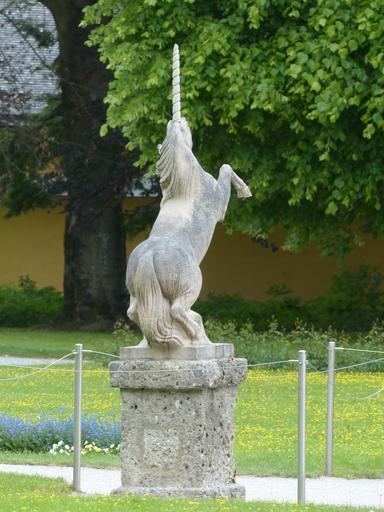Keywords: stone figure fig unicorn horse ross hellbrunn salzburg austria