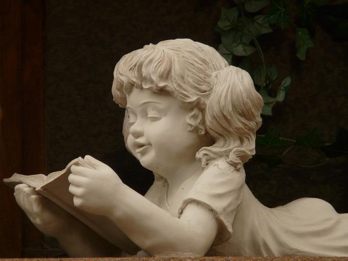 Keywords: stone figure girl stonemasonry white gypsum fig chalk figure book read