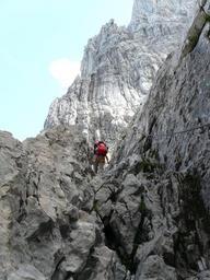 Keywords: stone gutter rock climbing hike mountaineer wilderkaiser mountains surefootedness head for heights impressive powerful high