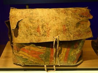 Keywords: Storage bag, North American, untreated leather - Etnografiska museet - Stockholm, Sweden - DSC01219.JPG en Exhibit in the Etnografiska museet Stockholm Sweden This work is old enough so that it is in the public domain Photography was permitted in the museum without restriction 2014-09-16 own Daderot other versions cc-zero North American collection in the Etnografiska museet Uploaded with UploadWizard Leather bags |