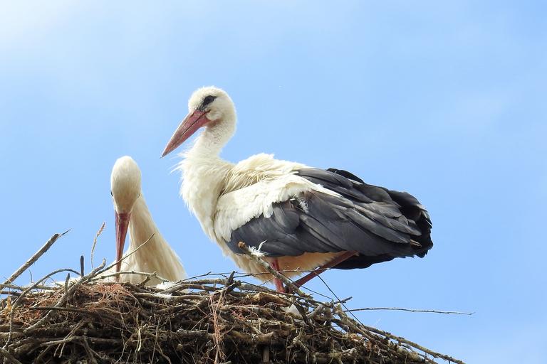 Keywords: stork stork couple nest storchennest storks feather sky blue
