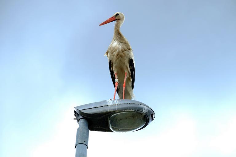 Keywords: stork street light rest lantern break recover relax street lamp sit relaxation nature enjoy recovery bird storks summer mood sky beautiful spring dress feather animal bird feather plumage white slightly