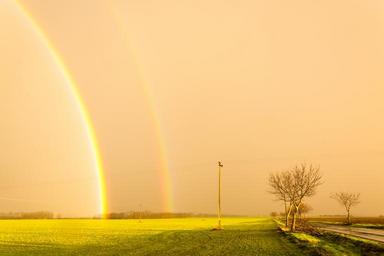Keywords: storm rainbow sunshine yellow meadow sunset nature