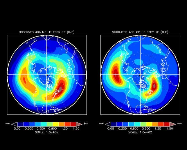 Keywords: Stormtrack.gif Observed left and simulated right 400 mb high-frequency eddy kinetic energy for Dec-Feb Units are m 2 s -2 The observations are calculated from 1-8 day high-pass filtered winds for the nine winter period starting in December 1984 The simulation comes from the solution of a linear stochastically forced two-level model using a basic state consisting of Dec-Feb averaged winds for the period 1984-1993 www cdc noaa gov/cdc/plans/9596/stormtrack html 1984-12 NOAA-CIRES Climate Diagnostics Center Low pressure systems Mean meteorological data PD-USGov |