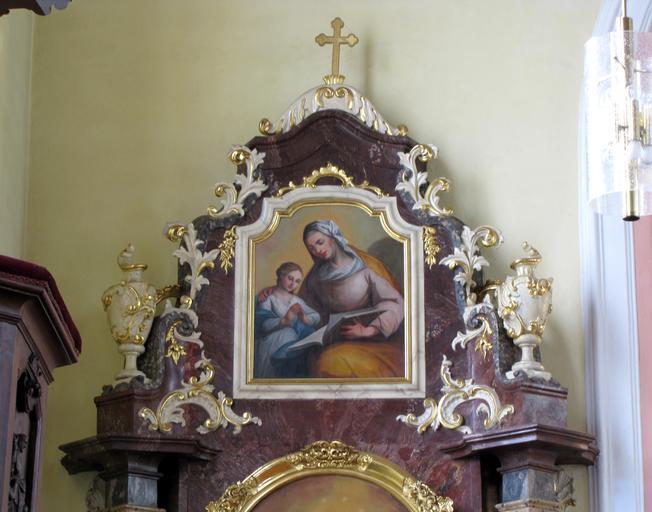 Keywords: Stotzheim StNicolas51.JPG Alsace Bas-Rhin Stotzheim Église Saint-Nicolas Autel secondaire de la Vierge XVIIIe-XIXe Tableau Education de Marie own 2013 Ralph Hammann cc-by-sa-3 0 Artwork / Œuvre d'art / Kunstwerk Artist XIXe siècle oil canvas cm Eglise Saint-Nicolas Stotzheim Autel secondaire PM67000327 IM67006039 object history other versions Ralph Hammann PD-old accession number Photographs of Stotzheim by Ralph Hammann Taken with Canon PowerShot SX20 IS Autels secondaires Église Saint-Nicolas de Stotzheim Wooden reliefs in Bas-Rhin Baroque reliefs in Alsace 18th-century wooden reliefs in Alsace Objets monuments historiques in Bas-Rhin church paintings Baroque church paintings in Alsace 18th-century church paintings in Alsace Paintings of Education of Virgin Mary |