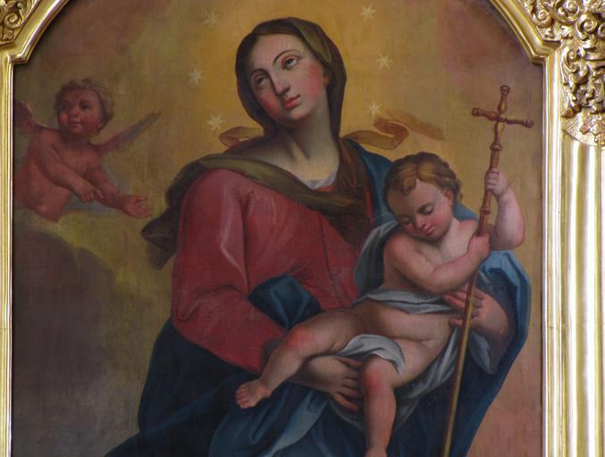 Keywords: Stotzheim StNicolas53.JPG Alsace Bas-Rhin Stotzheim Église Saint-Nicolas Autel secondaire de la Vierge XVIIIe-XIXe Tableau Vierge à l'enfant XIXe own 2013 Ralph Hammann cc-by-sa-3 0 Artwork / Œuvre d'art / Kunstwerk Artist Vierge à l'Enfant debout globe foulant aux pieds serpent Enfant Jésus lance XIXe siècle oil canvas cm Eglise Saint-Nicolas Stotzheim Autel secondaire PM67000327 IM67006039 object history other versions Ralph Hammann PD-old accession number Photographs of Stotzheim by Ralph Hammann Taken with Canon PowerShot SX20 IS Autels secondaires Église Saint-Nicolas de Stotzheim Objets monuments historiques in Bas-Rhin church paintings Neoclassical church paintings in Alsace 19th-century church paintings in Alsace Paintings of Madonna and Child in France 19th-century paintings of Madonna and Child Details of 19th-century paintings Paintings of putti in France 19th-century paintings of putti |