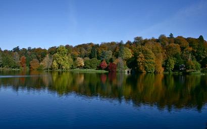 Keywords: stour-head autumn blue reflections nature water lake park fall season scenic natural foliage outdoor national sky landscape travel colorful red tree mirror