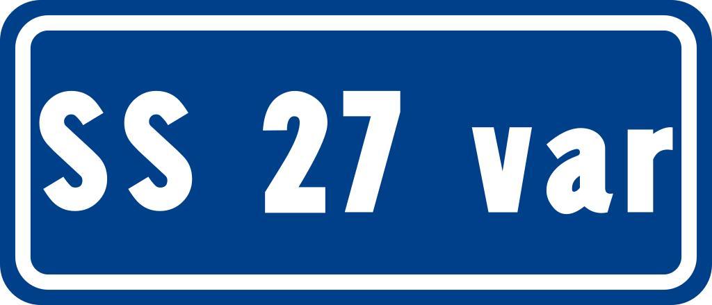 Keywords: Strada Statale 27var Italia.svg Icon of state road 27var Italy Símbolo de la carretera de estado 27var Italia Simbolo della Strada Statale 27var Italia Own work Based on ColdShine's work Fatta da me Basato sul lavoro di ColdShine 07/01/2011 Gigillo83 Diagrams of state road signs of Italy 027 var Strada Statale 27 var Variante di Gignod |