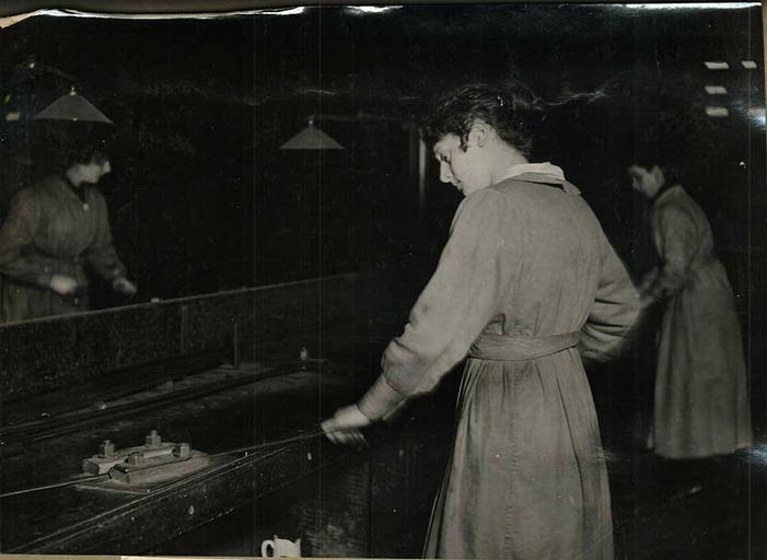 | Keywords: ww1 firstworldwar war worlife1915 parsons munitions women female labourers work factory heaton newcastle industrial heritage industrialheritage workers black and white photograph blackandwhitephotograph digital image digitalimage women of the war womenofthewar women labourers womenlabourers parsons' works parsonsworks shields road shieldsroad 1914 - 18 191418 straightening blade strips bladestrips interior darkness founder engineer charles parsons charlesparsons fascinating interesting unusual inventor steam turbine steamturbine daughter rachel parsons rachelparsons 1914 engineering cambridge board of directors boardofdirectors training department trainingdepartment ministry of munitions ministryofmunitions industry war effort wareffort belt clothing crease hair attentive standing button holding hand work bench workbench light shade mark grain blur handle jug floor wall surreal black and white These images belong to the Parsons’ ‘Women Labourers’ photograph album, taken at Parsons’ Works on Shields Road during the First World War. (TWAM ref: 2402) The factory was founded by engineer Charles Parsons, best known for his invention of the steam turbine. In 1914, with the outbreak of war, Parsons’ daughter Rachel, one of the first three women to study engineering at Cambridge, replaced her brother on the board of directors, and took on a role in the training department of the Ministry of Munitions, supporting the increasing amount of women taking on jobs in industry to support the war effort. More information about Rachel Parsons and Parsons’ Works can be found in Great North Greats a guest post by David Wright. (copyright) We’re happy for you to share these digital images within the spirit of The Commons. Please cite 'Tyne & Wear Archives & Museums' when reusing. Certain restrictions on high quality reproductions and commercial use of the original physical version apply though; if you're unsure please email archives@twmuseums.org.uk These images belong to the Parsons’ ‘Women Labourers’ photograph album, taken at Parsons’ Works on Shields Road during the First World War. (TWAM ref: 2402) The factory was founded by engineer Charles Parsons, best known for his invention of the steam turbine. In 1914, with the outbreak of war, Parsons’ daughter Rachel, one of the first three women to study engineering at Cambridge, replaced her brother on the board of directors, and took on a role in the training department of the Ministry of Munitions, supporting the increasing amount of women taking on jobs in industry to support the war effort. More information about Rachel Parsons and Parsons’ Works can be found in Great North Greats a guest post by David Wright. (copyright) We’re happy for you to share these digital images within the spirit of The Commons. Please cite 'Tyne & Wear Archives & Museums' when reusing. Certain restrictions on high quality reproductions and commercial use of the original physical version apply though; if you're unsure please email archives@twmuseums.org.uk |