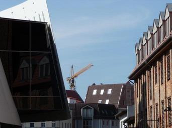Keywords: stralsund architecture home window reflect crane sky germany baltic sea