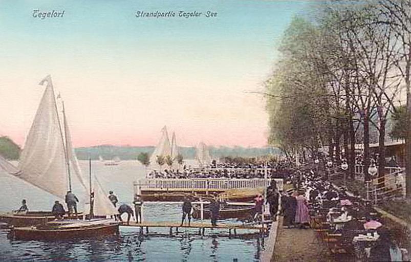 Keywords: StrandpartieTegelort.jpg en Water front Tegelort Berlin de Uferpromenade Tegelort Berlin Postkarte wahrig2003 ca 1910 PD-old Tegelort Havel in Berlin-Konradshöhe