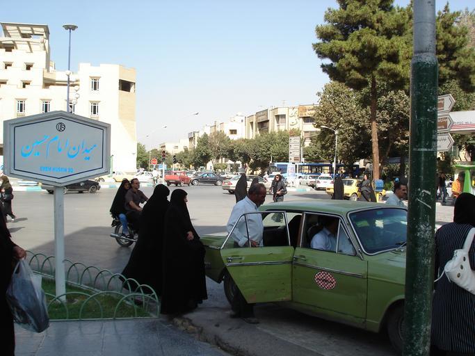 Keywords: Strassenszene in Esfahan.JPG de Straßenszene auf dem Khomeini-Platz in Esfahan Own Narcotica People of Isfahan Taxis in Iran