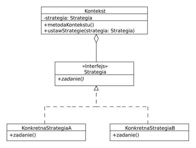Keywords: Strategy classes pl.svg pl Diagram klas UML wzorca projektowego Strategia Rysunek wykonany w programie UMLet en UML class diagram of the Strategy design pattern The drawing was made in UMLet own Zyxist 2011-09-11 Cc-zero Strategy design pattern Diagrams in Polish |