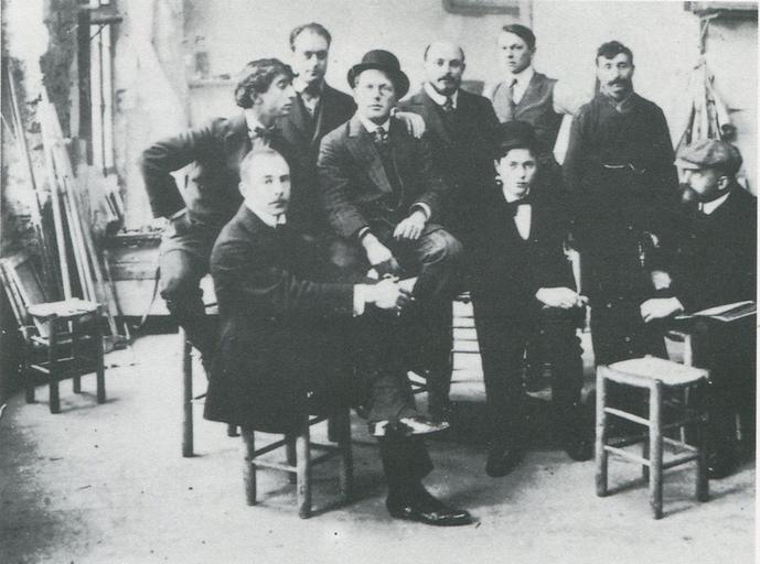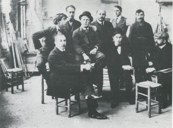 Keywords: StraubeAcademieMatisse.jpg de In der Académie Matisse um 1910 Ganz rechts Wilhelm Straube Ganz links Walter A Rosam Rechts davon sitzend Franz Nölken Levy/Tohmfor Café du Dome Schimper-Verlag Schwetzingen 1988 author 1910 ja Walter Alfred Rosam Franz Nölken William Straube Académie Matisse PD-Art |