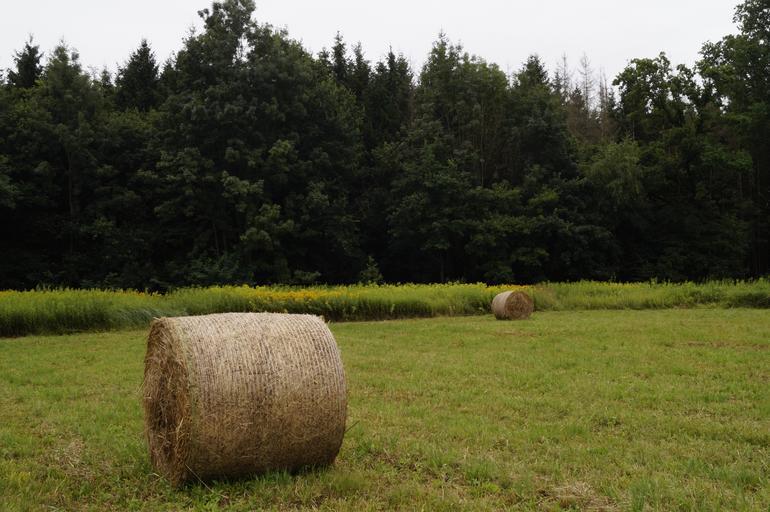 Keywords: straw bale field forest agriculture summer rural landscape nature meadow
