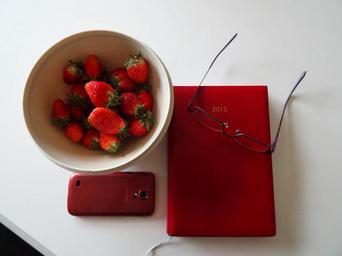 Keywords: strawberries agenda glasses telephone
