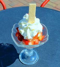 Keywords: strawberry cup cream ice cream sundae strawberries ice cream ice delicious summer dessert sweetness feasting
