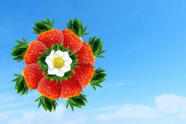 Keywords: strawberry strawberries pinwheel plant sky blue floating digital art photo montage mixup mashup ripe tasty eat garden fruit berry horizontal landscape free image royalty tree