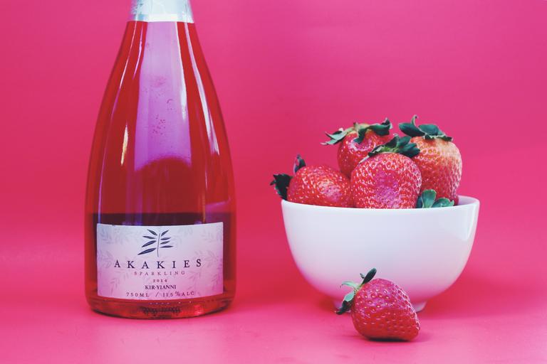 Keywords: strawberry strawberries wine wine bottle sparkling rose berries red fruit berry eat drink natural akakies kir yianni food fresh produce