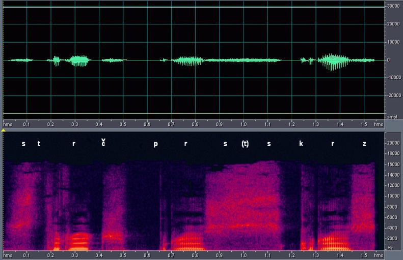 Keywords: StrcPrstSkrzKrk.png en Wave form and spectrogram for Czech Strč prst skrz krk Own Davius 2009/May Czech language