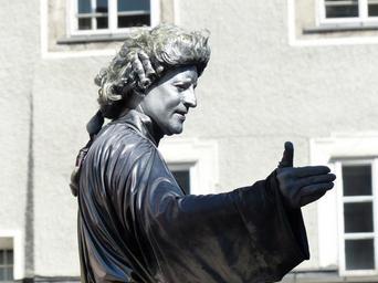Keywords: street artists pantomime statue colored person man mozart silver
