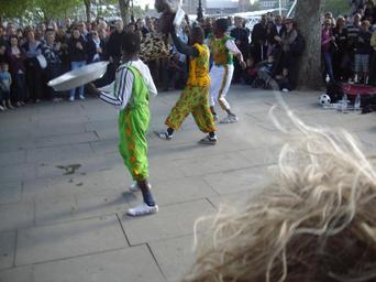 Keywords: 'Street Performers' in harmony at the river Thames walkway in London..JPG en A musical troupe performing on the sidewalks of the river Thames in London own Rudolph A furtado Sunday 30-5-20100 Street theatre Street performers in London Pavements in London |