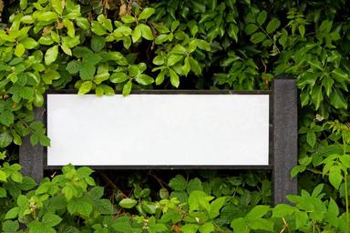 Keywords: street sign sign blank road sign roadsign text space space white green leaves foliage blackberry bush