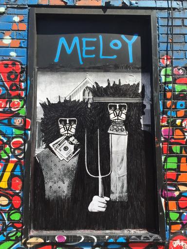 Keywords: streetart graffiti american gothic americangothic pizza money pitchfork blackwhite pasteup text Street art Explore elwarren's 231 photos on Flickr!