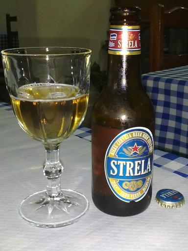Keywords: Strela (cerveja).jpg en Strela a beer from Cape Verde pt Strela uma cerveja de Cabo Verde na Ilha da Boa Vista own Adriao Beers of Cape Verde Beer caps Beer bottles brown glass Beer glasses