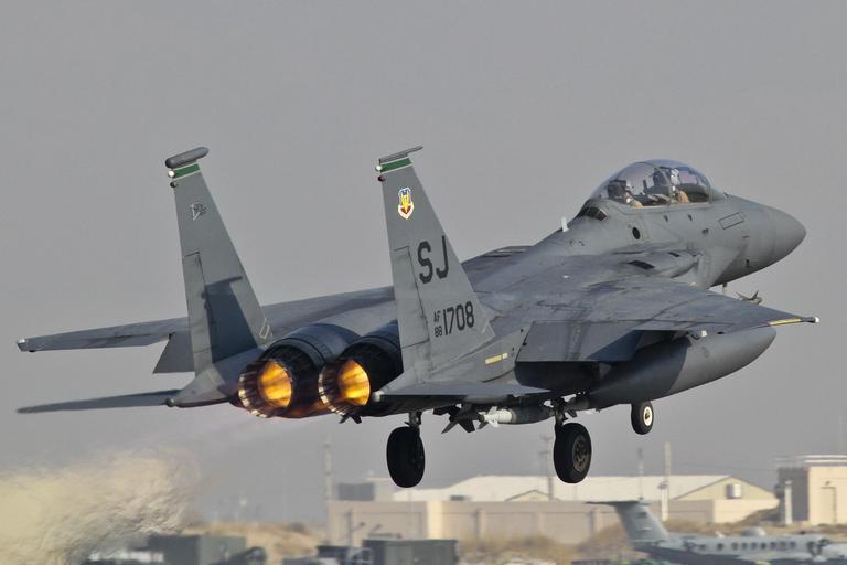 Keywords: creative commons royalty free public domain photo photograph digital matt hecht getty reuters ap public domain publicdomain royalty free royaltyfree military aircraft aviation combat iraq afghanistan war operation enduring freedom operationenduringfreedom operation iraqi freedom operationiraqifreedom f-16 f16 fighting falcon fightingfalcon strike eagle strikeeagle sunrise sunset air force one airforceone red flag alaska redflagalaska green flag east combat eastcombat aviation pilot pilots military aviationpilotpilotsmilitary pilot helicopter helo rotary wing fixed wing fixedwing jet fighter plane airplane vehicle outdoor A U.S. Air Force F-15E Strike Eagle from the 335th Fighter Squadron takes off from Bagram Air Field, Afghanistan. A U.S. Air Force F-15E Strike Eagle from the 335th Fighter Squadron takes off from Bagram Air Field, Afghanistan.