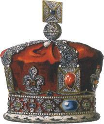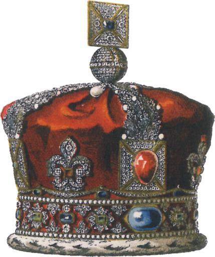 Keywords: Ströhl-Regentenkronen-Fig. 11.png Fig 11 Staatskrone der Königin Victoria Dieselbe wurde im Jahre 1838 von Mr Rundell zu Bridge angefertigt und ist mit 3093 Juwelen geschmückt darunter der beühmte Rubin der dem Prinzen Eduard von Wales genannt der schwarze Prinz von Don Petro König von Kastilien gegeben worden sein soll Als Modell diente die Krone König Karls II ¦ Imperial State Crown of the United Kingdom Hugo Gerard Ströhl Heraldischer Atlas Stuttgart 1899 03 02 2009 Creator Hugo Gerhard Ströhl Hochgeladen von David Liuzzo Coat of Arms PD-old-auto 1919 State crown of Queen Victoria Heraldic crowns by Hugo Gerhard Ströhl Rundell Bridge |