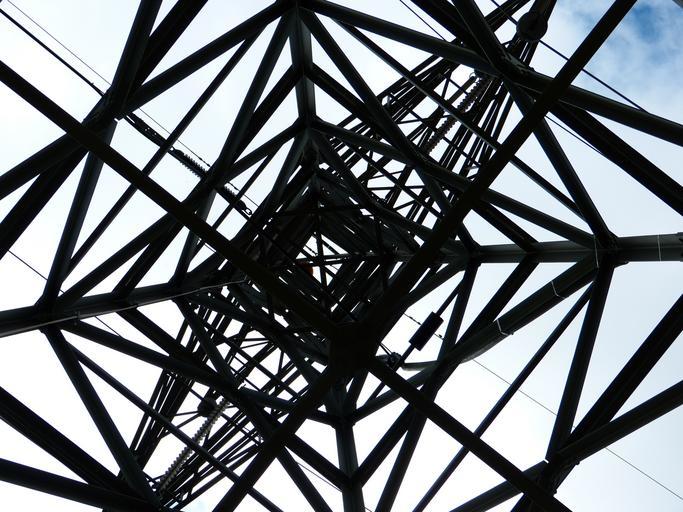 Keywords: strommast current electricity energy power supply technology high voltage pylon sky blue power lines upper lines risk