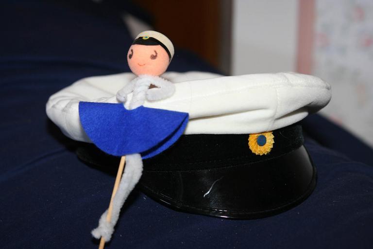 Keywords: Studenten.JPG Svensk studentmössa och figur på pinne Swedish graduation hat and figure on stick own 2007-05-16 Dnor Student caps Education in Sweden Cockades of Sweden Student culture in Sweden