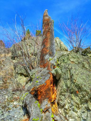 Keywords: stump mountain orange hiking adventure active trunk natural wood rock dead wild
