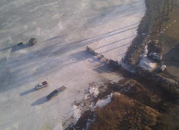 Keywords: Sturgeon Bay airboat deploys DVIDS1113799.jpg 44 45 0 9984 N 87 57 25 8251 W alt 212_source exif_heading en GREEN BAY Wis - A rescue airboat crew from Coast Guard Station Sturgeon Bay Wis launches into Green Bay to assess the two men who are choosing to remain on an ice floe in the bay in this Coast Guard overflight photo Feb 6 2012 After eight of the 10 people on the ice were removed by a rescue airboat crew from the Brown County Sheriff's Department the two men remained in their ice shanty until later that evening when a friend retrieved them on his personal airboat U S Coast Guard photo by Lt j g Nathan Shakespeare 2012-02-06 https //www dvidshub net/image/1113799 1113799 2013-12-12 18 02 GREEN BAY WI US PD-USGov Sturgeon Bay Wisconsin Images from DoD uploaded by Fæ |